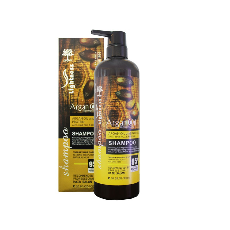 شامپو فاقد سولفات روغن آرگان و پروتئین لایتنس با دارا بودن 95% روغن آرگان طبیعی مراکش، بازسازی کننده و ضد ریزش موها است.این شامپو از ریزش و شوره موها جلوگیری کرده و آبرسان انواع مو به ویژه موهای خشک و آسیب دیده است.روغن آرگان با تنظیم رطوبت طبیعی و PH مو باعث رفع خشکی و موخوره نیز میشود.پیشنهاد می شود برای نتیجه گیری بهتر و سریعتر در کنار این شامپو از ماسک مو فاقد سولفات لایتنس و روغن آرگان لایتنس نیز استفاده شود. این شامپو با مرطوب سازی مو و پوست سر, ضمن استحکامبخشی و ترمیم موهای آسیبدیده, به درخشش هرچه بهتر مو هم کمک میکند.