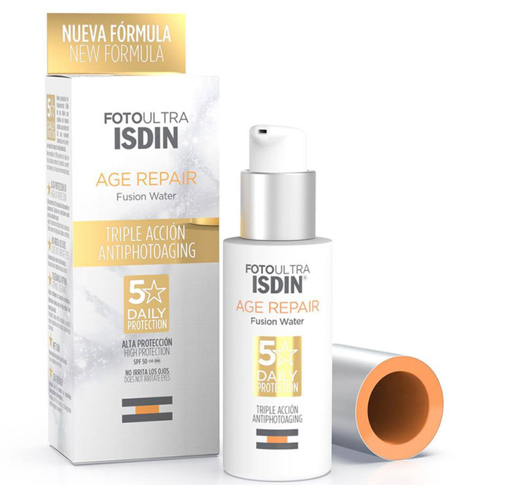 ضد آفتاب Age Repair ایزدین یکی از بهترین کرم های ضد آفتاب خارجی با SPF50 است که از پوست در برابر اشعه های نور خورشید محافظت کرده و در عین حال از پیری آن جلوگیری میکند. این ضد آفتاب عملکردی سه گانه دارد و به محافظت از پوست، ترمیم آن و جلوگیری از آسیب دیدن پوست بر اثر اشعههای مضر میپردازد. کلاژن سازی را در پوست تحریک کرده و علائم اولیه پیری مثل چین و چروکها را بهبود میبخشد. فاقد چربی و غیر کمدون زا است و بافتی بسیار سبک و زودجذب روی پوست دارد که احساس چربی و سنگینی ایجاد نمیکند.