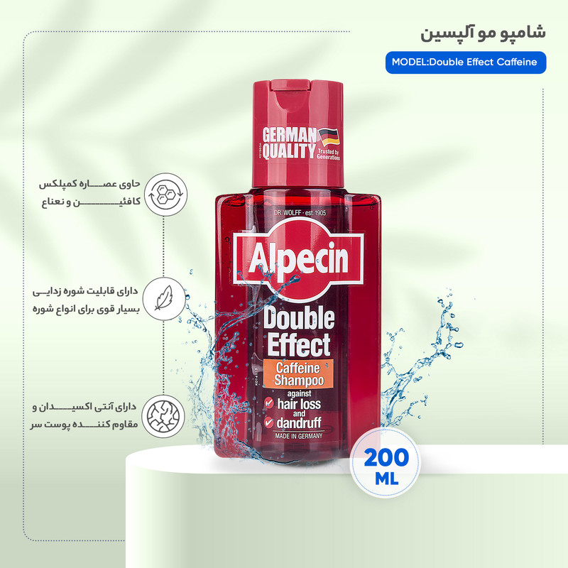 شامپو ضدشوره و ضد ریزش مو آلپسین مدل دابل افکت کافئین حجم 200 میلیلیتر